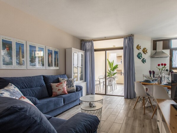 Privileged location in the center, very close to El Médano beach and the main square. Brand new accommodation, completely renovated, furnished, decorated and equipped with the comfort and needs of guests in mind. With a fresh, marine-inspired style, it seeks to convey the lifestyle that is breathed in this coastal area. The apartment is spacious, open-plan, very practical and comfortable, where care has been taken down to the smallest detail to delight our guests.