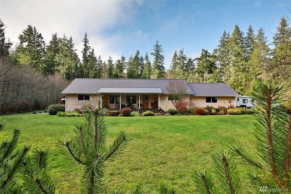 Beautiful Farm-style house stay with two bedrooms, and two king size beds. One sleeper sofa that can fit two people. Two full bathrooms, and nice backyard on acreage that is very quiet with nature surrounding it. Enjoy the beauty of handcrafted trails, abundant wildlife and large outdoor fire-pit for camp fires. Centrally located on Whidbey Island close to the charming seaside towns of Coupeville and Langley.