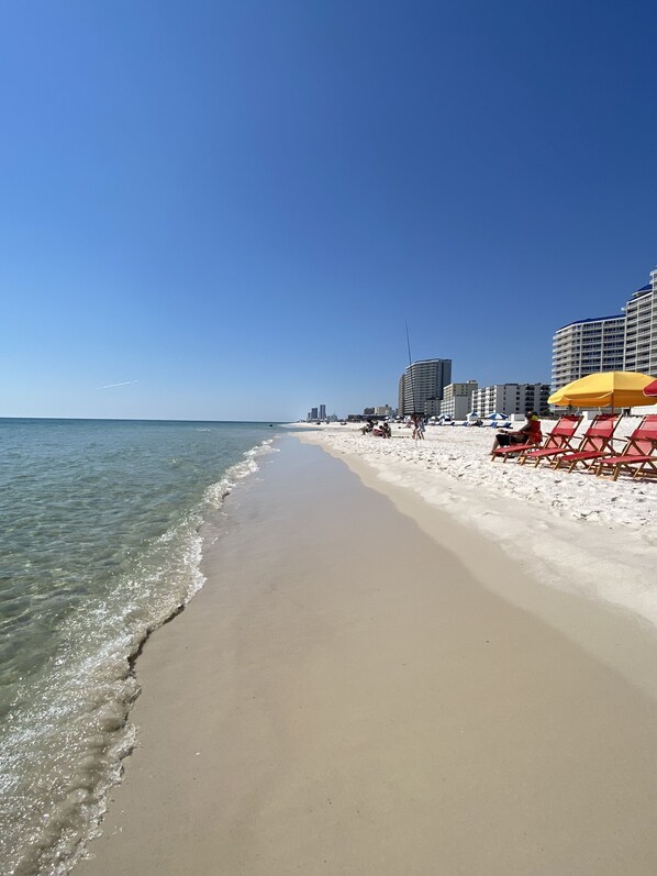 The condo is walking distance to the Gulf State Park Pier. Great gulf fishing is only a short walk from the condo. Lake Shelby in Gulf State Park is .25 miles and offers kayak and paddleboard board rentals. Also located within walking distance is the Gulf State Park Lodge & Convention Center, Island Pancake House, Sea N Suds Restaurant, Waffle House, The Hangout (.75 mile /15 min walk), Hangout Music Festival (May), National Shrimp Festival (October) and many other shops & restaurants. You can watch the City of Gulf Shores fireworks display right in front of the condo on July 4th. There are so many activities in the area for kids and adults. There's a water park (Waterville USA), OWA Amusement Park, arcades, go-cart tracks, mini golf, parasailing, Jet Ski and boat rentals, dolphin cruises, charter boat fishing, a zoo and so much more. If you enjoy biking, there is a 14+ mile backcountry bike trail nearby in Gulf State Park. The area offers 10+ golf courses for your enjoyment, excellent deep-sea fishing, amusement parks, shopping, sightseeing, restaurants, sailing, boating, and swimming. There is also a large outlet mall in the area. In the evening there are many fun places to dine and dance to local music. During the winter months, there are plenty of activities for "Snowbirds" to enjoy. Come stay with us in Gulf Shores and enjoy sandy white beaches and beautiful sunsets.