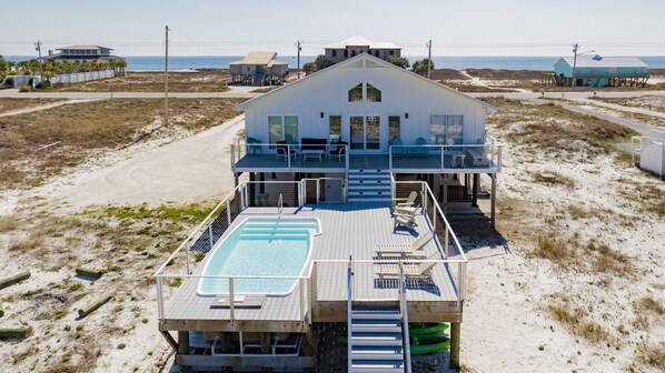 Welcome to A Lazy Lagoon, a 4 bedroom, 2 bathroom home, spacious enough to sleep 12 right on Little Lagoon. The sparkling private saltwater pool can be heated in the cooler months(additional fees apply). A Lazy Lagoon boasts beautiful Gulf Views and direct water access to Little Lagoon. Beautiful views and ample indoor and outdoor living space make this desirable home the perfect spot to book your next beach vacation! The owners have provided guests with kayaks to use so you can get out on the water and take in the views! (A waiver must be signed prior to use.)