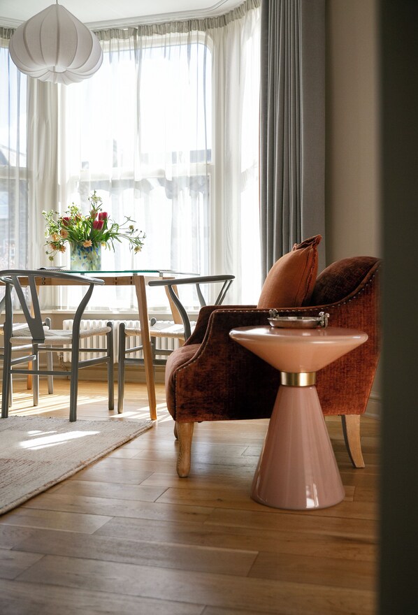 On the first and second floors, these two apartments offer a warm welcome with open-plan living spaces, integrated appliances, and designated off-street parking. Each apartment is equipped with free WIFI, an LCD TV with DVD player and freeview channels.