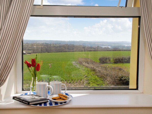 Bedroom 3: 2 x Single (3ft) Beds Ensuite: Cubicle Shower, Toilet. Oil central heating, electricity, bed linen, towels and Wi-Fi included. Travel cot and highchair available on request. Enclosed garden with patio and garden furniture. Private parking for 4 cars. No smoking.. This detached holiday cottage enjoys beautiful, sweeping, panoramic views over the Haven Secret Waterway and on towards the Preseli Hills. Surrounded by rolling farmland at the end of a private drive, this is a lovely home for a Pembrokeshire holiday. Wooden beams, quarry-tiled floors, latch doors, scatter rugs and tasteful furnishings all go to enhance the cottage atmosphere of this lovely property. There is a pretty dining suite with ladder-back chairs seating six guests around a circular table beside the huge inglenook fireplace.
