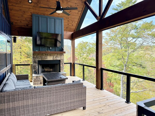 streaming TV, ventless gas log fireplace, and direct access to the back porch (lower deck).