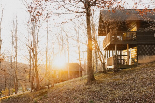 The lower level offers 3 queen beds, 2 twin beds, and a full bathroom. This area opens to another large porch with great views and space for a hammock!