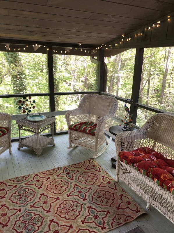 Unique private cabin close to the wonders of nature and hopping city adventures. House has everything you need to relax after hiking or shopping. Truly enjoyed hot tub, and creek sounds from screen enclosed deck.