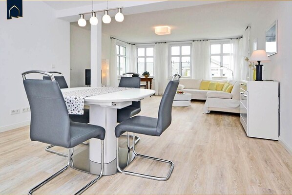 Outdoor dining - Spacious apartment in Heringsdorf with 2 bathrooms, only 300 m from the beach (Seebad Heringsdorf)