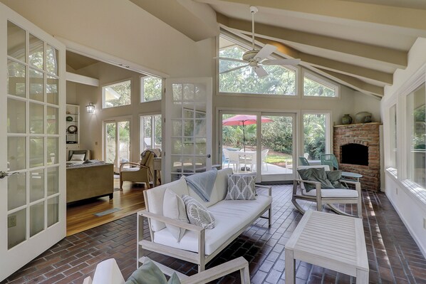 Located in the heart of Palmetto Dunes, 12 Haul Away is a fantastic near ocean home perfect for multi-family getaways. Enjoy family nights in by the decorative fireplace or relax with views of the lagoon and dock from the sun room. The private pool area offers plenty of seating and shade, while a propane grill off the kitchen makes mealtime convenient.