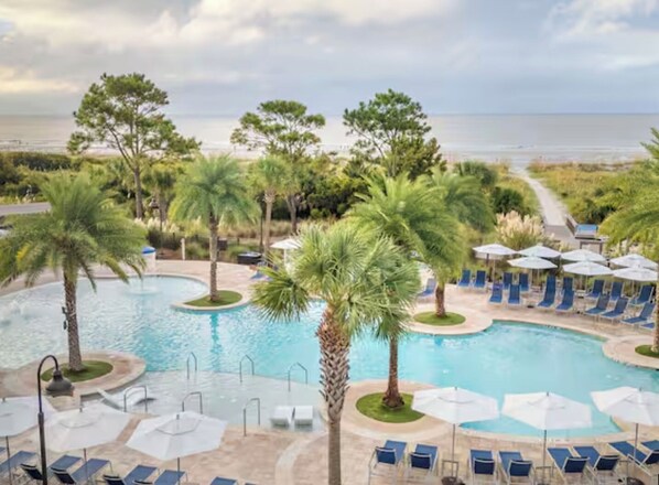 Gorgeous spacious 2 br/2ba ocean front suite. Full kitchen, laundry in room, balcony, steps to beach. Two amazing pools, hot tub, workout room, onsite bar, outdoor grills, bike rentals available. Imagine a beach walk to a nearby beach bar. Consider an exhilarating bike ride along the many bike trails. Scrumptious restaurants galore. Or stay in and grill your favorite meal and enjoy the views from your private balcony?
