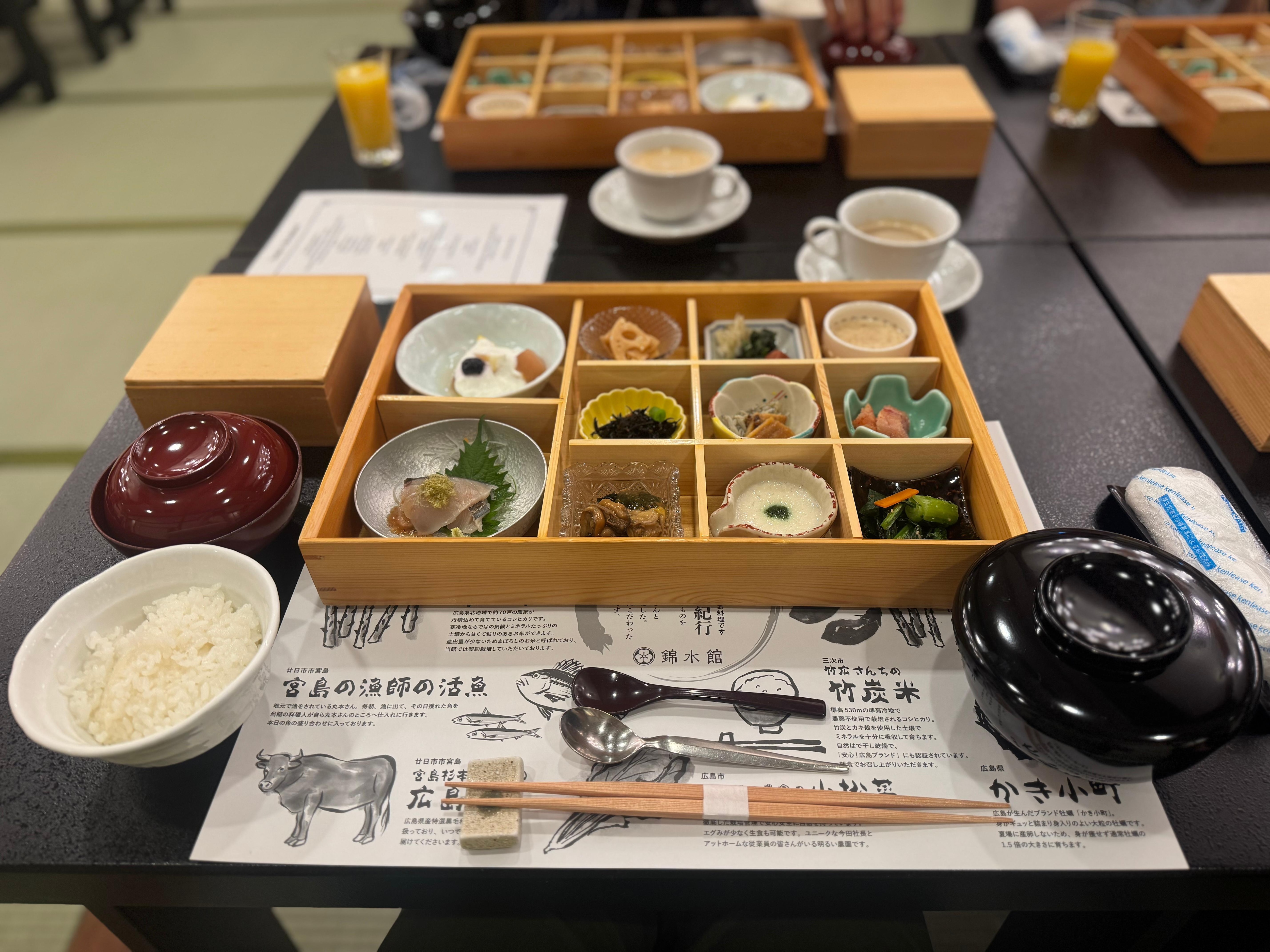 The experience here was truly something else! Never stayed in a place like this. Our room was basic (traditional Japanese) and our meal was delicious served in the room. The amenities were excellent including baths and a lounge that included snacks and drinks upstairs. The location was incredibly close to everything on Miyajima and it felt special to be here once all of the tourists had left for the day.