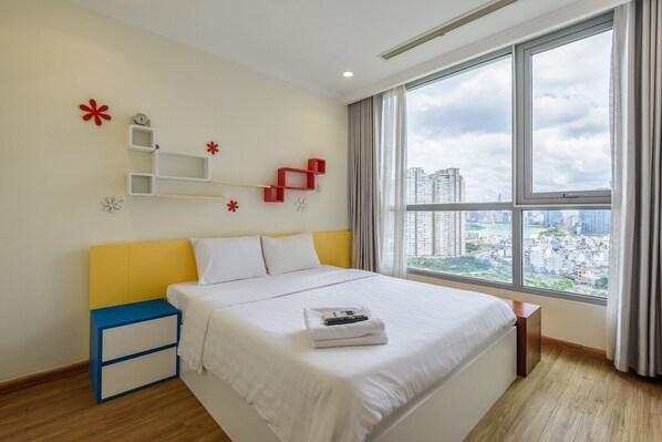 In the heart of Saigon's CBD, this spacious apartment offers a comfortable retreat. Enjoy FREE hi-speed WiFi, unwind by the outdoor pool or work out at the indoor gym. With a Smart TV in both living and master bedrooms and modern appliances like rice cooker and kettle, this home away from home is perfect for relaxation.