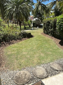 Very clean, location is super for kids to run across the grass to the pool. Well equipped and nice decor. Easy parking right outside and good security. The Deck restaurant on site presents a competitive dining option with lovely sunsets complete with fireflies - though it's closed on Sundays. Adjoining pool is a nice alternative to the main pool. Air conditioning is fine for night use in the bedrooms, ceiling fans throughout the property and vented doors/windows provide good air circulation. Owner and property manager highly responsive and pleasant/welcoming.