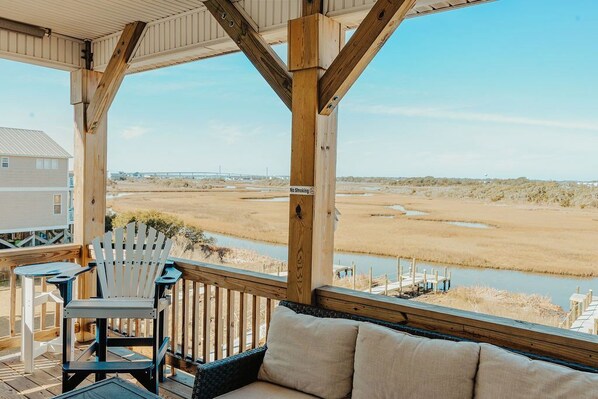 Need a little extra relaxation? Take advantage of two levels of soundfront covered porches—perfect for spotting wildlife, reading a good book, or simply soaking in the view.
