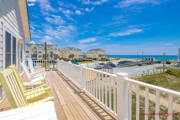 Come and enjoy all that Mermaid Avenue has to offer. This 4 bedroom, 3.5 bath home is done in the popular reverse floorplan style, putting the best views in the living spaces. The open living room, dining area, and kitchen ensures everyone can be together while you prepare meals or watch movies. The dining area seas 8 plus 2 at the counter. Relax on the 2 oceanview sundecks with deck furniture or swing and rock your cares away on the streetside covered porches.