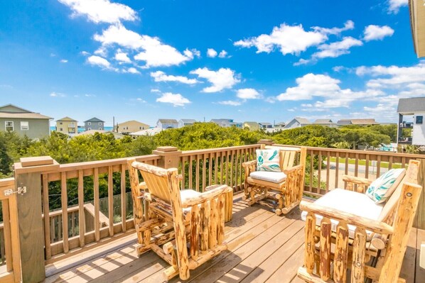 King master with private full bath w/tub/shower and sliding doors to shared 2nd floor covered deck