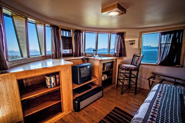 NO EXTRA CLEANING FEES: Stay on the Double Eagle, a fully renovated 75 foot Gulf Shrimp boat converted to a vacation rental. Three levels with three decks overlooking the Kachemak Bay, volcanoes, mountains and glaciers. Full kitchen, Spacious living room, 2.5 baths, two bedrooms, and new comfortable sleeper sofa on the main deck, internet and Smart TV’s. Sleeps up to 6. Conveniently located to downtown Homer and the Homer Spit.