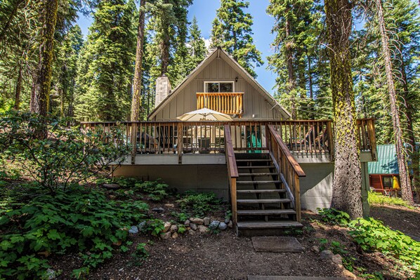A woodsy Tahoe Pines cottage with a greenbelt behind the home—great for peaceful forest vibes and nearby hikes.