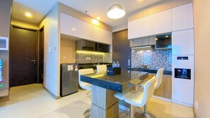 Title: Homey Combined 3Br With Working Room At Gp Plaza Apartment Reviews, Deals & Photos 2026 - Expedia.co.uk [See all properties](http://www.expedia.co.uk/Hotel-Search?regionId=&adults=2&children=&sort=RECOMMENDED&useRewards=false&semdtl=&userIntent=&vip=false) Entire apartment # Homey Combined 3Br With Working Room At Gp Plaza Apartment Apartment in Jakarta with an outdoor pool ## Photo gallery for Homey Combined 3Br With Working Room At Gp Plaza Apartment ![Outdoor pool - Homey Combined 3Br With Working Room At Gp Plaza Apartment (Jakarta)](https://images.trvl-media.com/lodging/111000000/110180000/110177900/110177881/25fe5c4f.jpg?impolicy=resizecrop&rw=598&ra=fit) ![Deluxe Apartment | 3 bedrooms, desk - Homey Combined 3Br With Working Room At Gp Plaza Apartment (Jakarta)](https://images.trvl-media.com/lodging/111000000/110180000/110177900/110177881/80bc0dbb.jpg?impolicy=resizecrop&rw=297&ra=fit) ![Deluxe Apartment | Living area - Homey Combined 3Br With Working Room At Gp Plaza Apartment (Jakarta)](https://images.trvl-media.com/lodging/111000000/110180000/110177900/110177881/9a0c8321.jpg?impolicy=resizecrop&rw=297&ra=fit) ![Deluxe Apartment | Private kitchen | Fridge, stovetop, rice cooker, dining tables - Homey Combined 3Br With Working Room At Gp Plaza Apartment (Jakarta)](https://images.trvl-media.com/lodging/111000000/110180000/110177900/110177881/cfe0ff86.jpg?impolicy=resizecrop&rw=297&ra=fit) ![Deluxe Apartment | Private kitchen | Fridge, stovetop, rice cooker, dining tables - Homey Combined 3Br With Working Room At Gp Plaza Apartment (Jakarta)](https://images.trvl-media.com/lodging/111000000/110180000/110177900/110177881/15243418.jpg?impolicy=resizecrop&rw=297&ra=fit) - Overview - Location - Amenities - Policies Located close to Gelora Bung Karno Stadium, Homey Combined 3Br With Working Room At Gp Plaza Apartment has plenty to offer. ### Entire apartment 3 bedroomsSleeps 5969 sq ft ## Popular amenities - Pool - Kitchen - Air-conditioning £106 includes taxes & fees 5 Jan - 6 Jan 2026 ## Add dates for prices Check-in Check-out Travellers ## About this property ### Entire place You'll have the entire apartment to yourself and will only share it with other guests in your party. ### Homey Combined 3Br With Working Room At Gp Plaza Apartment Apartment in Jakarta with an outdoor pool This smoke-free apartment building features an outdoor pool. The apartment features a dining area and a sitting area, plus a kitchen with a fridge and a stovetop. Additional amenities include a rice cooker, a shower and a desk. This apartment offers 3 air-conditioned accommodations with rice cookers and free toiletries. This accommodation offers separate sitting areas and includes dining tables. Kitchens offer fridges, stovetops and separate dining areas. Bathrooms include a shower. Business-friendly amenities include desks and desk chairs. Recreational amenities at the apartment include an outdoor pool. ## Property amenities ### Pool/Spa - Outdoor pool ### Parking and transport - No on-site parking available ### Kitchen - Hob - Refrigerator - Rice cooker ### Dining - Dining table ### Bedrooms - 3 bedrooms ### Bathroom - Free toiletries - Shampoo - Shower - Soap - Towels provided ### Living spaces - Dining table - Separate dining area - Separate sitting area ### Work spaces - Desk - Desk chair ### Comfort - Air conditioning ### Pets - No pets or service animals ### Suitability/Accessibility - No lift - Smoke-free property ### Location highlights - Near an outlet shopping centre ### Safety features - Carbon monoxide detector not reported (host has not indicated whether there is a carbon monoxide detector on the property; consider bringing a portable detector) - Smoke detector not reported (host has not indicated whether there is a smoke detector on the property) ### General - 3 units ## Similar properties ![Studio](https://images.trvl-media.com/lodging/103000000/102140000/102139600/102139571/d30fe22a.jpg?impolicy=fcrop&w=469&h=201&p=1&q=medium) ### Simple And Comfort Studio Apartment At Nine Residence Mampang Prapatan - Pool - Kitchen - Air-conditioning - Living/dining area £48 includes taxes & fees 18 Jan - 19 Jan 2026 [](https://www.expedia.co.uk/Hotel-Search?startDate=2026-01-18&endDate=2026-01-19&selected=102139571&PinnedHotelID=102139571&HadPinnedHotel=true®ionId=-1&adults=2) ![Room | Desk, free WiFi, bed sheets](https://images.trvl-media.com/lodging/45000000/44230000/44223600/44223537/d11f65f7.jpg?impolicy=fcrop&w=469&h=201&p=1&q=medium) ### Modern and Comfy Studio Tamansari Sudirman Apartment Setiabudi - Pool - Free Wi-Fi - Laundry room - Outdoor space £28 includes taxes & fees 8 Jan - 9 Jan 2026 [](https://www.expedia.co.uk/Hotel-Search?startDate=2026-01-08&endDate=2026-01-09&selected=44223537&PinnedHotelID=44223537&HadPinnedHotel=true®ionId=-1&adults=2) ![Outdoor pool](https://images.trvl-media.com/lodging/98000000/97080000/97072300/97072256/9fcec9e2.jpg?impolicy=fcrop&w=469&h=201&p=1&q=medium) ### Cozy And Modern Look 2Br The Wave Kuningan Apartment Setiabudi - Pool - Kitchen - Free Wi-Fi - Air-conditioning £69 includes taxes & fees 5 Jan - 6 Jan 2026 [](https://www.expedia.co.uk/Hotel-Search?startDate=2026-01-05&endDate=2026-01-06&selected=97072256&PinnedHotelID=97072256&HadPinnedHotel=true®ionId=-1&adults=2) ![Outdoor pool](https://images.trvl-media.com/lodging/121000000/120350000/120344000/120343934/4f987448.jpg?impolicy=fcrop&w=469&h=201&p=1&q=medium) ### Boho Touch 2Br Apartment With Extra Room At Lucky Tower Residence Old Jakarta - Pool - Air-conditioning £59 includes taxes & fees 25 Jan - 26 Jan 2026 [](https://www.expedia.co.uk/Hotel-Search?startDate=2026-01-25&endDate=2026-01-26&selected=120343934&PinnedHotelID=120343934&HadPinnedHotel=true®ionId=-1&adults=2) ![Outdoor pool](https://images.trvl-media.com/lodging/122000000/121180000/121175400/121175382/e6c0c8f7.jpg?impolicy=fcrop&w=469&h=201&p=1&q=medium) ### Solace 2Br Near Cikini Station At Menteng Park Apartment Central Jakar