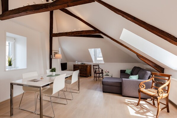 70 m² 3★ apartment, fully renovated, located on the 2rd and top floor of a typical building in Honfleur's historic center.