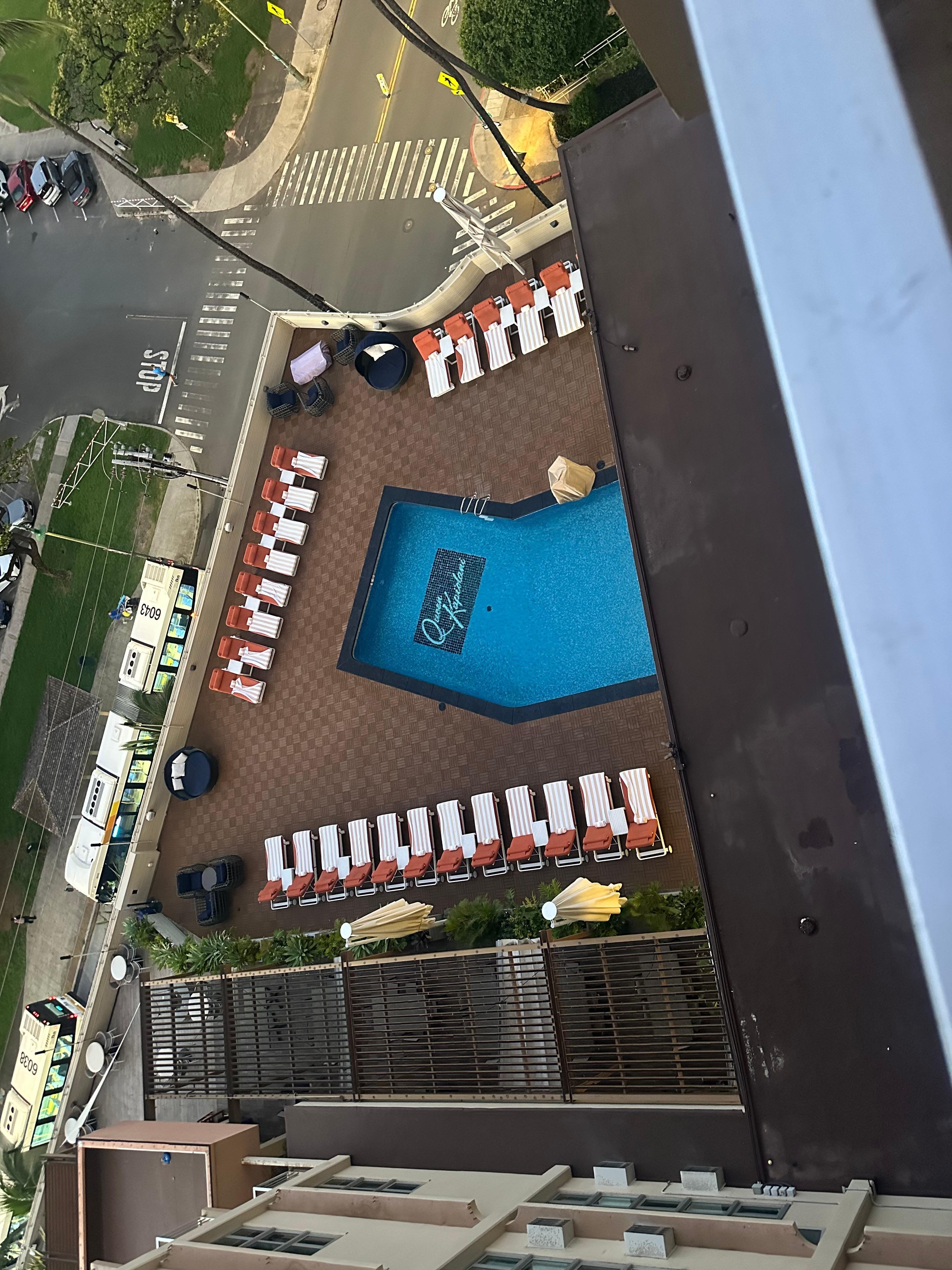 Location is perfect, on the edge of the strip across from the zoo with unobstructed views to Diamond Head and one short block to the shore. The coffee cafe in the lobby had a great menu and plenty of varied seating. The pool area needed more seating and shaded areas though. Overall, I would recommend because location puts everything in reach.