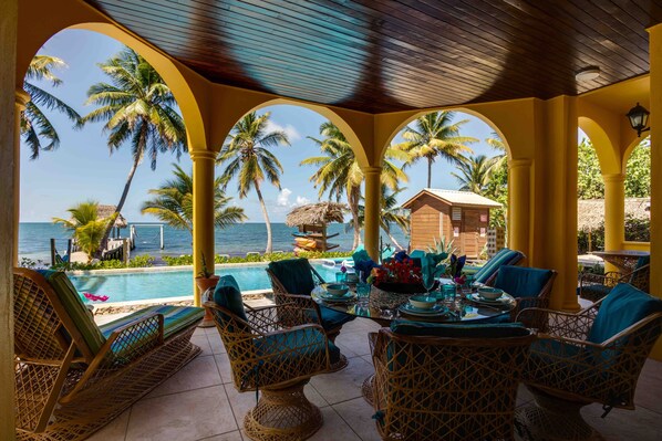 Outdoor dining - Luxury, Beachfront, Home with Resort-amenities, Housekeeping & FREE GOLF CART. (Hopkins)