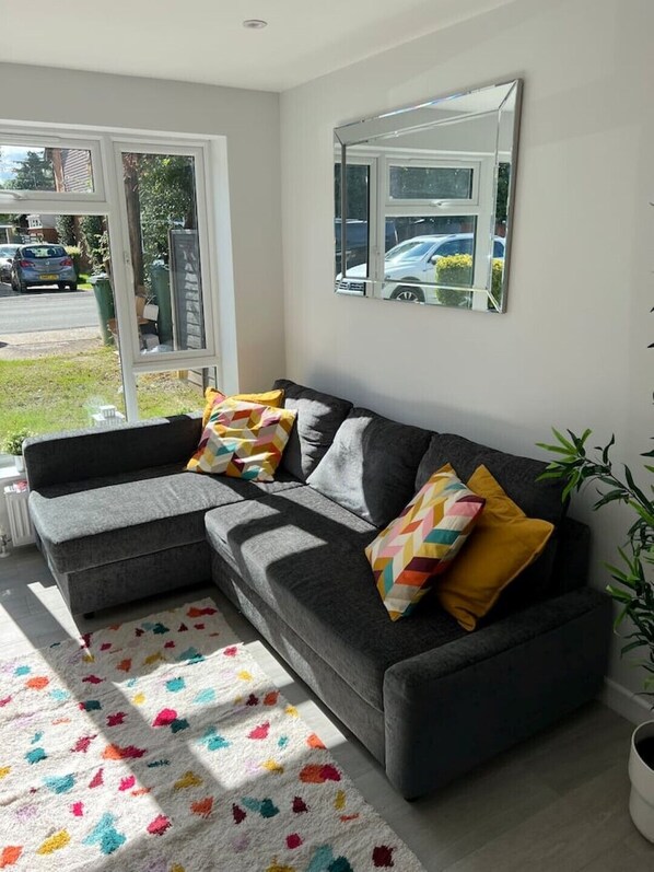 Just 5 minutes from Gatwick Airport, this stylish home offers a warm welcome for families. With a fully equipped kitchen and lounge with sofa bed, you can relax in comfort while the kids enjoy their own TVs in bedrooms and bathroom.