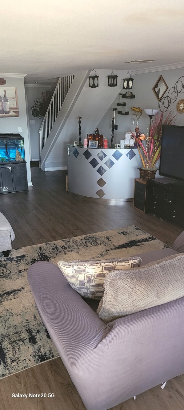 Relaxing and spacious to recoup on your days adventures. Kitchen equipped with all the essentials to include spices for cooking. 5 min Walking distance to Randall's and Aldi's for the items forgotten.
