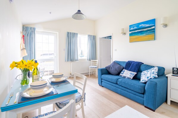 Little Lammas is a smart and cosy self-contained single-storey property adjacent to the owner's home. Comfortable, stylish and all-on-one level, this delightful private annexe has views across the front garden to the fields beyond. With a clever use of space and a light and bright modern interior comprising an open plan living area and adjacent en-suite bedroom, this is a great little spot for a couple or single holidaymaker looking for a conveniently located, peaceful and relaxing break at any time of the year.