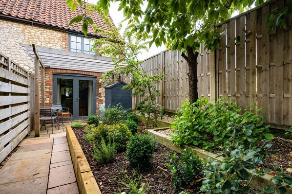 Outside, a fabulous sheltered garden hosts a private sun terrace, bistro table and chairs plus accompanying charcoal barbecue, set to a backdrop of raised planted border, small lawn and a mature cherry tree. Being fully-enclosed, this is a great place for the dog to play safely. Off-road parking for one car is available to the side of the property. Directly opposite the cottage, the Thornham Deli offers delicious breakfasts and light bites, plus takeaway coffees and deli counter treats. Additional cars can be parked in the deli car park.