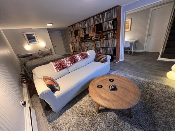 Immerse yourself in a unique retreat at this Staatsburg getaway. Enjoy access to an extensive record collection, played on a vintage DJ turntable and sound system, or request a personalized DJ session. Stroll through the beautifully landscaped one-acre yard with gardens and deck, perfect for relaxation.