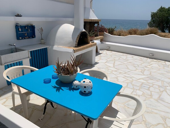 Outdoor dining - Villa "Blue Sea" with Sea View, Terrace & Wi-Fi (Makry gialos ierapetra)
