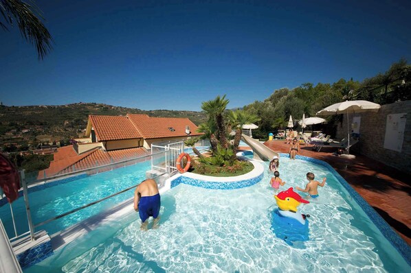 Pool All pools are available for shared use. Outdoor pool. There are a total of 2 outdoor pools and can be used throughout the season depending on the weather conditions. Sun loungers and umbrellas are available in the pool area.