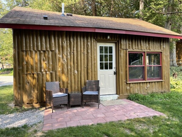 This is a cozy cabin ideal for 2 to 4 people at most. It features a kitchenette with refrigerator, sink, microwave and induction cooktop. The cabin is a perfect spot to visit May through October as the weather is wonderful. The Sturgeon River is very well known for it's fishing, especially in the Spring and the Fall. It is also the fastest flowing river in the lower peninsula of Michigan making it ideal for tubing and adventurous kayaking. The leaves changing in October is a -must see. We have worked hard to provide comfort, fun, beautiful grounds and service so that you can make life long memories.
