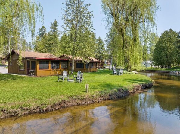 Completely renovated log cabin located on the beautiful Sturgeon River. Cabin originally built in the 1940's and remodeled in 2021. It has the charm of the old cabin but with updated inside, plumbing, electric, furnishings and amenities. Reed's on the River is located on 350 ft. of the Sturgeon River with 6 other cabins on the property to rent. All cabins have unobstructed views of the river where you can fish or end your tubing/kayaking adventure at your front door. We are located within walking distance to downtown Indian River, which has cute shops, bars and ice cream shops.
