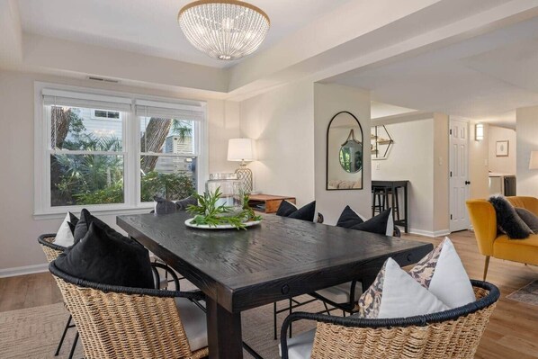 Relax in the stylish 3BR 2Bath duplex nestled in the tranquil & family-friendly neighborhood of Isle of Palms. Enjoy the serenity and unwind on the picturesque patio while being just 2 blocks away from the sunny beach, or use the complimentary six-passenger golf cart instead :) ✔ 3 Comfortable Bedrooms ✔ Queen-size Sofa Bed ✔ Fully Equipped Kitchen ✔ Patio ✔ Smart TV ✔ High-Speed Wi-Fi ✔ EV Charging ✔ Complimentary Six Passenger Golf Cart ✔ Parking For Up To 4 Vehicles More below! As soon as you step foot in the modern home, you're welcomed by a very stylish yet highly comfortable open-plan living area. It is designed and decorated in an elegant manner that compliments the fantastic vacation setting of Isle of Palms. The fully equipped kitchen and its adjacent dining area open onto the entertaining living room, setting the stage for memorable evenings. Plenty of natural light comes through the large windows and makes the whole home very bright during the entire day. Retreat to three comfortable bedrooms, which feature 5☆-resort comforts that allow you to rest after an exciting day at the beach. But wait! The best is yet to come! Step outside on the private patio, where you can catch a breath of fresh air and soak up the fun while gazing at the beautiful views of the neighborhood. ★ LIVING ROOM ★ It immediately feels like home. Find your place on the comfy sofa, get your favorite drinks and snacks and enjoy a fantastic night with your family and friends. ✔ Comfortable Sofa with Pillows ✔ Queen-size Sofa Bed ✔ Smart TV with Amazon Prime ✔ Comfy Sofa Chairs ✔ Stylish Coffee Table ✔ Reading Lamps ★ KITCHEN & DINING ★ It is fully equipped with state-of-the-art cooking appliances that make it suitable for preparing any meal, whether a simple breakfast, quick snack, or a three-course gourmet dinner. Spacious quartz countertops provide plenty of room for you to work your MasterChef magic. ✔ Microwave ✔ Stove ✔ Oven ✔ Refrigerator/Freezer ✔ Dishwasher ✔ Toaster ✔ Coffee Maker ✔ Sink - Hot & Cold Water ✔ Trays ✔ Glasses ✔ Silverware ✔ Pots & Pans Serve tasty breakfasts and small snacks right here in the kitchen. If you are looking for a more formal setting for those gourmet lunches and dinner, we recommend the sunny dining area. ✔ Dining Table with Seating for 8 ✔ Eat-In Kitchen Table with Seating for 2 ★ SLEEPING ARRANGEMENTS – 3 BEDROOMS ★ After an exciting day of adventuring throughout the sun-soaked beaches, you will be looking to rest for an equally entertaining tomorrow. Once you are ready to relax, please make your way to these comfortable bedrooms. ♛ Master Bedroom: King-Size Bed ♛ Bedroom 2: Queen-Size Bed ♛ Bedroom 3: Double Bed All bedrooms are equipped with a similar set of amenities. ✔ Premium Pillows, Linens, and Sheets ✔ Cabinets with Spacious Drawers ✔ Accent Chairs ✔ Night Stands with Reading Lights ★ BATHROOMS ★ The house offers two full bathrooms for maximum comfort and convenience. Both are stocked with fresh towels and essential toiletries, so you don't have to worry about bringing your own. ✔ Walk-in Showers ✔ Vanity ✔ Mirror ✔ Toilet ✔ Towels ✔ Hair Dryer ✔ Essential Toiletries ★ PATIO ★ A home like this would not shine at its best without a private outdoor space where you can relax and enjoy the serenity of the quiet neighborhood. It offers a charming area with comfortable amenities in which you can revel. ✔ Seating Area with Table and Chairs ✔ BBQ Grill ✔ Beach carts, chairs, umbrellas, and towels. ✔ Outdoor Shower ✔ Complimentary Six-passenger Golf Cart We look forward to hosting you! Feel free to let us know if you have any questions; we're locals; we have the answers. Happy Travels! The entire ground floor is exclusively yours, without interruption for the duration of your stay, so relax, unwind, and make yourself at home. Other than the already mentioned amenities, the house also features: ✔ High-Speed Wi-Fi ✔ Electronic lock - no keys to lose at the beach! ✔ Air Conditioning ✔ Heating ✔ Washer/Dryer ✔ Iron/ Board ✔ 240v Charging Port for EV ✔ Free Parking (4 Cars or 1 RV) You don't need to overpack as we have prepared an abundance of beach amenities. ✔ Beach Toys ✔ Beach Towels ✔ Lounge Chairs ✔ Umbrellas ✔ Cooler ✔ Wagon Interaction with guests We will be accessible 24/7 for our guests via phone, text, or the Airbnb app. Expect a quick and prompt response. We give our guests space but are available for every inquiry. Contact us now so we can begin arranging your perfect vacation! Overview The home is situated in the serene and family-friendly neighborhood on The Isle of Palms, just two blocks away from the sun-soaked beach. This prime and well-connected location provides a perfect base to escape the everyday hustle and bustle while being close to numerous activities, top restaurants, shops, attractions, landmarks, and breathtaking beaches. Here are some places of interest you'll be looking to visit during your stay. ✔ Isle of Palms Beach (1 min away) ✔ Isle of Palms County Park (2 min away) ✔ Isle of Palms Marina (7 min away) ✔ Wild Dunes Resort (8 min away) ✔ Shem Creek (10 min away) ✔ Downtown Charleston (15 min away) ✔ Boone Hall Plantation & Gardens (17 min away) ✔ Fort Sumter National Monument (20 min away) The Isle of Palms is somewhat notorious for its lack of parking spaces, especially at the beach. That is why we have prepared four free parking spots right in front of the home. We recommend leaving the car parked here and walking to the beach as it is only two blocks away. ★ COVID-19 SANITIZATION ★ Heath, safety, and wellbeing of our guests are of utmost importance. For this reason, we use a thorough cleaning process after each check-out. ing.
