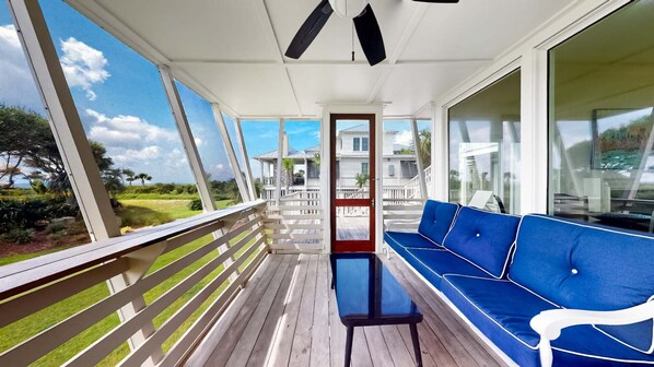 Living Room with flat-screen cable TV, access to screened porch, access to sun deck (Fireplace not available for use)