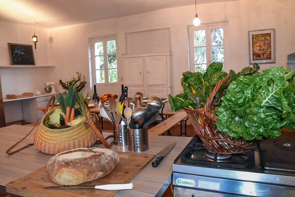 A large equipped kitchen is also at your disposal for preparing and sharing meals.