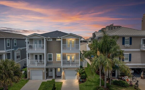 Walk in and start your vacation. The first floor features a full bath, two bedrooms, one with a queen bed, the other a pull-out couch with a dedicated work area (we really hope you don't have to use the work area :). Head up to the second floor to our beautiful fully equipped gourmet kitchen featuring granite counters, clean stainless appliances, and everything you need if you decide to cook! or just kick back and relax in the comfy family room and watch some tv or play some games. This level also has a half bath and 2 balconies to relax while you sip your morning coffee and plan your adventures for the day. Head up to the third floor and sleep peacefully. On one end is the spacious master suite which offers a cozy king bed with ensuite bath featuring a large walk-in shower. On the other end is a large queen bedroom with private bath. Both bedrooms offer a private balcony for relaxing at the end of the day to the calming waves breaking on the shore.