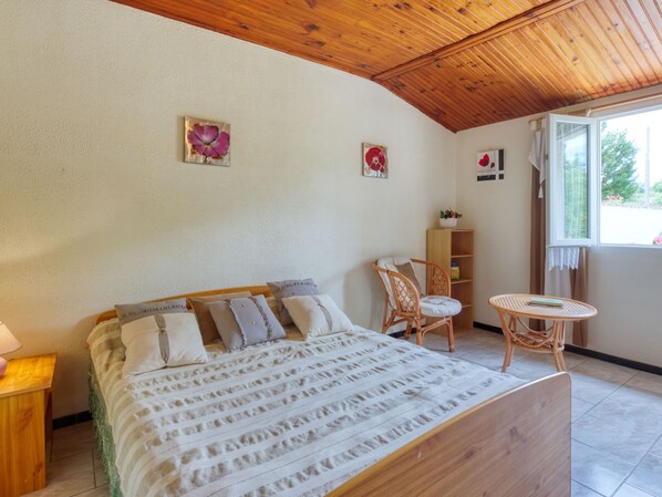 "Pontac-Gadet 2", 3-room semi-detached house 70 m2. Practical furnishings: living/sleeping room with 1 french bed (140 cm, length 190 cm), satellite TV. 2 rooms, each room with 1 french bed (140 cm, length 190 cm). Kitchen (oven, dishwasher, 4 gas rings, toaster, kettle, microwave, freezer, electric coffee machine) with dining table. Shower, sep. WC, double hand-basin. Electric heating. Terrace furniture, barbecue, deck chairs (6). Facilities: washing machine, iron. Internet (WiFi, free). Please note: non-smoking house. Smoke alarm.