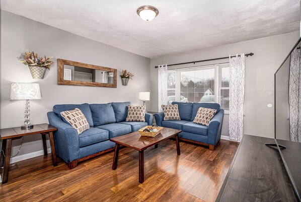 Our homey apartment is very comfortable for 4 people. We do provide an air mattress that will accommodate 2 extra people in the living room. It has been recently remodeled. The home is easily accessible with only 1 small step to get to the front porch with the rest of the home all on one level.