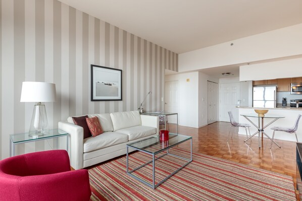 Close to Newport Centre and Liberty State Park, 1 Bedroom in the Heart of Downtown Jersey City provides amenities such as a gym. Guests can connect to free in-room WiFi.