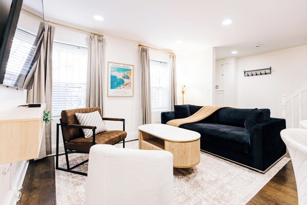 Nestled in a picturesque, tree-lined neighborhood known for its historic brownstones and vibrant community, this duplex offers the perfect blend of modern comfort and timeless charm and is the perfect retreat for families and groups of friends looking to explore New York City and the surrounding area while enjoying a cozy, comfortable stay. The apartment is tastefully decorated with warm, inviting touches and thoughtful amenities to make your stay memorable. Scroll down to the Notes section for some additional offers we have!