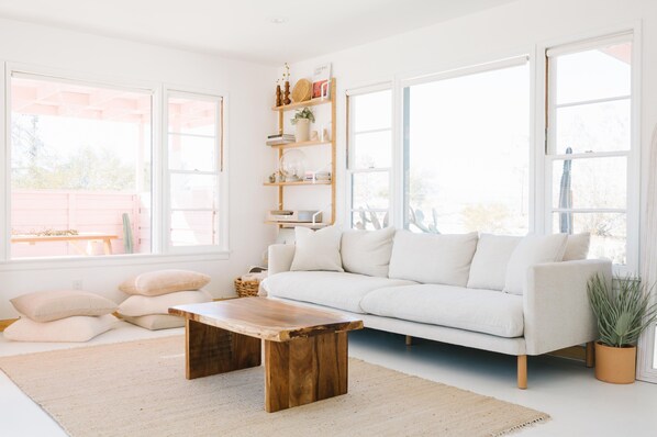 Experience the magic of Joshua Tree at Palo Verde Ranch, a 1956 ranch-style home with boulder views and enchanting desert sunsets. Unwind in the hammock chairs, gather around the fire pit or relax in your private outdoor heated rain shower. With amenities like a fully-stocked kitchen, record player and indoor gas fireplace you can cozy up indoors while still taking in breathtaking views.