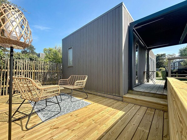 Cozy 3-Bedroom Mobile Home Near Beach with Pool, Gym, and Terrace