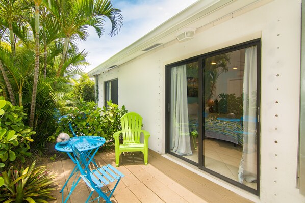 A private hideaway nestled in an enclave of bungalows, perfectly located, for those who want to be right by the ocean. Absolute prime location. Enjoy this freshly renovated bungalow, in a quiet, lushly landscaped tropical setting. There’s a private patio, with an ocean view, a kitchenette, free wifi and laundry facility, While a perfect hideaway, it’s also close to restaurants, malls, tennis, golf, surfing, fishing, nature preserves & theaters. PB Airport is only 20 minutes away.