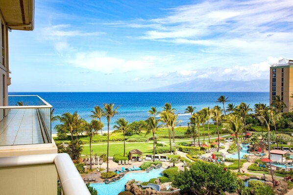 On the sixth floor of Honua Kai, this ocean view suite offers an unforgettable sight of Molokai's island beauty. Unwind by one of four pools, soak in a hot tub, or experience the serene lagoon-style pool and waterslide for kids.