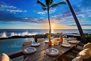 Title: Ali'i Point #9: Lavish Oceanfront Home w/Pool & Spa- Relax & Watch the Waves Reviews, Deals & Photos 2026 - Expedia.co.uk [See all properties](http://www.expedia.co.uk/Hotel-Search?regionId=&selected=44297730&adults=2&children=&sort=RECOMMENDED&useRewards=false&semdtl=&userIntent=&vip=false) Entire home # Ali'i Point #9: Lavish Oceanfront Home w/Pool & Spa- Relax & Watch the Waves Beachside holiday home with infinity pool ## Photo gallery for Ali'i Point #9: Lavish Oceanfront Home w/Pool & Spa- Relax & Watch the Waves ![An infinity pool, a heated pool - Ali'i Point #9: Lavish Oceanfront Home w/Pool & Spa- Relax & Watch the Waves (Kailua Kona)](https://images.trvl-media.com/lodging/45000000/44300000/44297800/44297730/6e2e520a.jpg?impolicy=resizecrop&rw=598&ra=fit) ![Outdoor dining - Ali'i Point #9: Lavish Oceanfront Home w/Pool & Spa- Relax & Watch the Waves (Kailua Kona)](https://images.trvl-media.com/lodging/45000000/44300000/44297800/44297730/2ae2d1e6.jpg?impolicy=resizecrop&rw=297&ra=fit) ![Exterior detail - Ali'i Point #9: Lavish Oceanfront Home w/Pool & Spa- Relax & Watch the Waves (Kailua Kona)](https://images.trvl-media.com/lodging/45000000/44300000/44297800/44297730/df016e44.jpg?impolicy=resizecrop&rw=297&ra=fit) ![Smart TV - Ali'i Point #9: Lavish Oceanfront Home w/Pool & Spa- Relax & Watch the Waves (Kailua Kona)](https://images.trvl-media.com/lodging/45000000/44300000/44297800/44297730/17a4e241.jpg?impolicy=resizecrop&rw=297&ra=fit) ![Exterior - Ali'i Point #9: Lavish Oceanfront Home w/Pool & Spa- Relax & Watch the Waves (Kailua Kona)](https://images.trvl-media.com/lodging/45000000/44300000/44297800/44297730/4d5a02e0.jpg?impolicy=resizecrop&rw=297&ra=fit) - Overview - Location - Amenities - Policies Escape to Ali'i Point #9, a luxurious oceanfront home that embodies the spirit of aloha. Unwind in the spacious living room, gourmet kitchen, or lounge area with large sliding doors that let in tropical breezes and incredible ocean views. Step outside to the solar infinity heated pool and on-demand electric heated hot tub overlooking glistening waves. ## Reviews 9.8 Exceptional ### Entire home 3 bedrooms4 bathroomsSleeps 63190 sq ft ## Popular amenities - Ocean view - Hot tub - Kitchen - Washing machine - Dryer ## Add dates for prices Check-in Check-out Travellers ## About this property ### Entire place You'll have the entire home to yourself and will only share it with other guests in your party. ### Ali'i Point #9: Lavish Oceanfront Home w/Pool & Spa- Relax & Watch the Waves Experience the serene beauty of Hawaiian living in \*\*Ali'i Point #9\*\*, a spacious 3-bedroom, 3.5-bath vacation home located on Alii Drive in Kailua Kona, HI. Spanning 3,190 square feet, this inviting oasis is designed for comfort and relaxation, making it perfect for families or groups seeking a memorable getaway. \*\*What You’ll Love About Ali'i Point #9\*\* • Expansive interior space with ocean views • Private pool and community amenities • Luxurious jacuzzi and outdoor shower • Gourmet kitchen with Koa wood cabinetry • Close proximity to water sports and dining \*\*Living & Dining\*\* Bright and airy, the living area boasts vaulted ceilings and large sliding doors that invite refreshing breezes and stunning views. The layout encourages gathering and entertaining, featuring enough seating for everyone to relax or dine together. \*\*Chef-Ready Kitchen\*\* The kitchen is equipped with high-end appliances, including a stove, oven, refrigerator, and microwave. With Koa wood cabinetry and ample counter space, it’s an excellent environment for culinary creations. \*\*Outdoor Oasis\*\* Enjoy the private pool and expansive outdoor lounge area, perfect for soaking up the sun or dining al fresco under the stars. \*\*Sleeping Quarters\*\* • Primary Bedroom – King bed, ensuite bath with jacuzzi tub, ocean views • Guest Bedroom 2 – King bed, ensuite bath, mountain views • Guest Bedroom 3 – Queen bed, ensuite bath, tranquil ambiance \*\*Extras\*\* Features include air conditioning, high-speed Wi-Fi, a washer and dryer, and beach gear for your adventures in paradise. Enjoy comforts like ceiling fans, smart TVs, and outdoor seating. \*\*Resort / Community Highlights\*\* The community offers a heated pool, tennis courts, and easy access to shopping, dining, and local activities such as snorkeling, golfing, and hiking. Experience the best of paradise with a community that feels like a retreat. \*\*Nearby\*\* • Nearby – Walk: Beaches, local dining, shops • Nearby – Short Drive: Golf courses, stunning hiking trails, and cultural attractions \*\*Good to Know\*\* • This home features air conditioning in the sleeping areas only; however, with ocean breezes and ceiling fans, the kitchen, living room, and dining room remain comfortable. • The home features a pod-style layout that embraces the outdoor space; however, this means all bedrooms are located on the second level and connected via a covered walkway. Therefore, given the oceanfront proximity and detached bedrooms, the home may not be ideal for families with small children. • For a worry-free stay, a starter kit of basic supplies is provided. Please remember to replenish as needed. • Hawaii Tax ID TA 166-655-4368-01 • This property is a licensed short-term vacation rental. STVR-19-363491 / NUC-19-1388/ PL-NUCR-2025-002842 Reserve your dates now while your preferred week is available! Experience the tranquil lifestyle of Hawai'i in the comfort and luxury of Ali'i Point #9. ## Property amenities ### Beach - On the beach ### Pool/Spa - Communal pool - Heated pool - Hot tub - Infinity pool - Private pool ### Internet - Available in the house: Free internet ### Parking and transport - Car recommended - Onsite parking options include a garage ### Kitchen - Coffee/tea maker - Cookware, dishware, and utensils - Dishwasher - Hob - Ice maker - Microwave - Oven - Refrigerator - Toaster ### Bedrooms - 3 bedrooms - Bedsheets provided 
