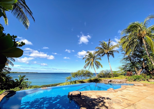 Heavenly Waters Hawaii is a tranquil oceanside tropical retreat in Puako, perfect for your next family vacation. This spacious three building estate includes a large oceanfront cliffside pool and hot tub to enjoy memorable Hawaiian sunsets. It is ideally situated on the Big Island's renowned Kohala Coast.