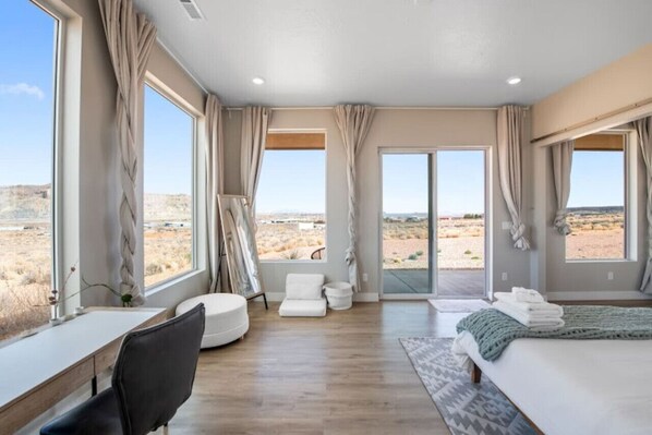 The world of Duality is shared within this compound. These two homes are uniquely structured mirror images of each other. Located in the heart of the desert and surrounded by stunning Mesa views, the homes boast a combined total of 6 beds and 6 baths. The Compound is located between Zion National Park and the Grand Canyon. Just 13 minutes from Lake Powell 30 mins from Antelope Slot Canyons and 20 mins from Horseshoe Bend. Book with us for a unique experience where both Luxury and nature collide