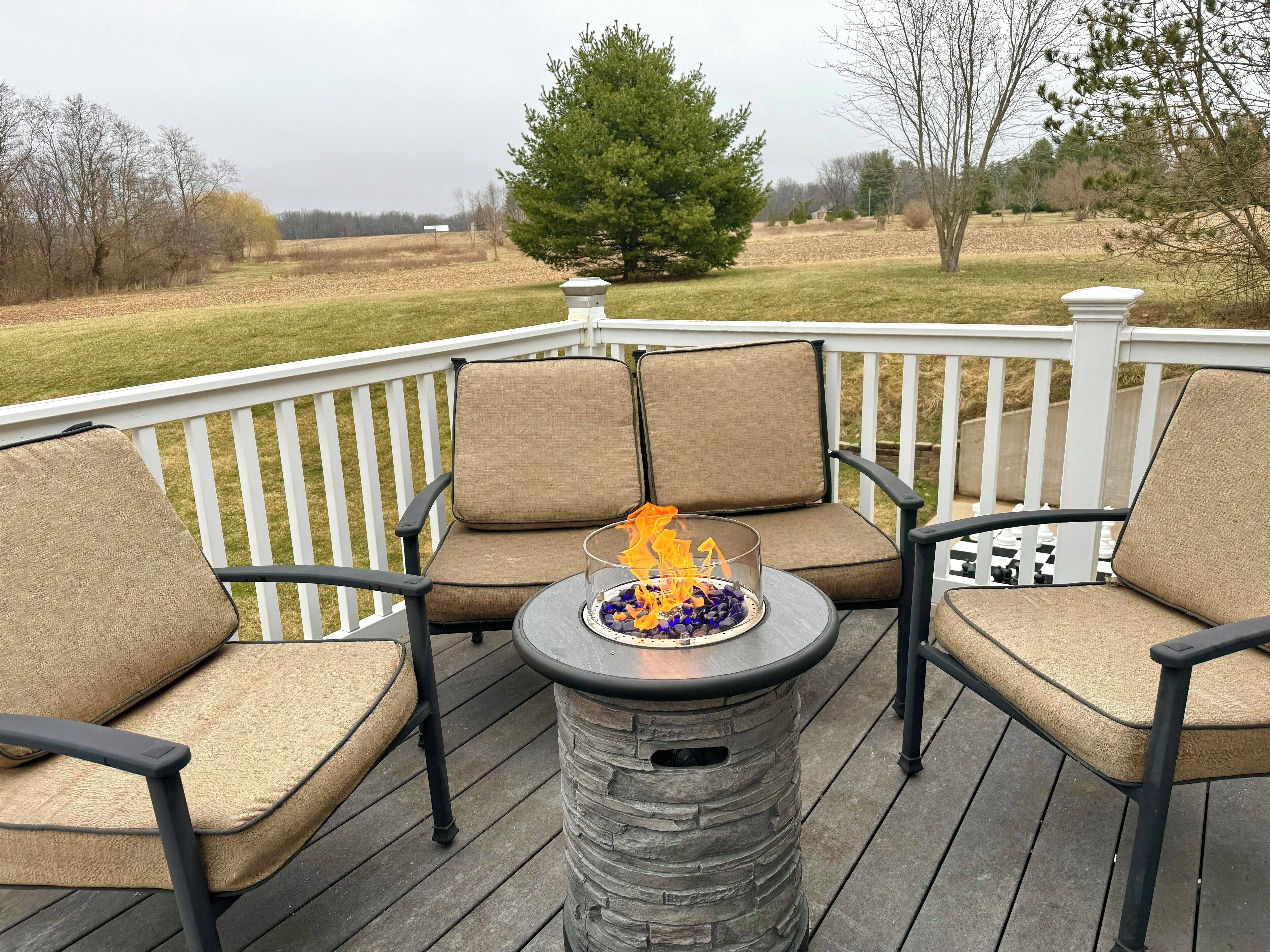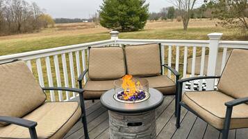 Private deck with hot tub and fire pit.