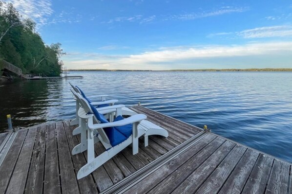 Down a flight of steps you come down to the waterfront. The owners have provided a canoe, kayak and paddleboat for you to use as well as a selection of life jackets and safety gear to get you out on the water. The primary access into the water is from the stairs on the dock and the water is approximately 5 ft at the end of the dock. If you are looking to do some fishing, Head Lake has excellent Bass fishing and the owners have installed a new dock for the 2013 season complete with cleats for mooring your own boat or the watercraft provided.